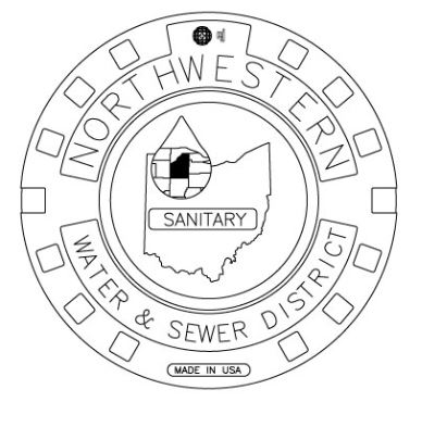 This 1020 Series solid cover is designed for use with a compatible EJ frame (sold separately). This cover features a custom logo, Sanitary badging, and Northwestern Water & Sewer District Sanitary tag text.