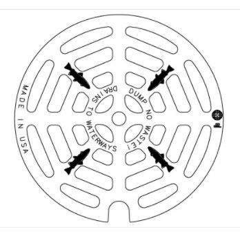 • Grate Text: Dump No Waste! and Drains to Waterways