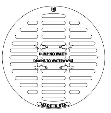 • Grate Text: Dump No Waste! and Drains to Waterways