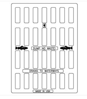 • Grate Text: Dump No Waste! and Drains to Waterways