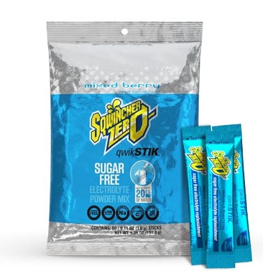 Sqwincher Qwik Stik, ZERO - Sugar Free Hydration Powder Packets, Mixed Berry Flavored, Sold in a Pack of 50