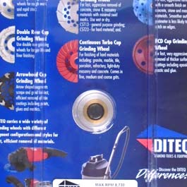 This Diteq diamond-cup grinding wheel is used for fast, aggressive removal of concrete, stone and masonry materials. This grinding wheel minimizes swirl marks.